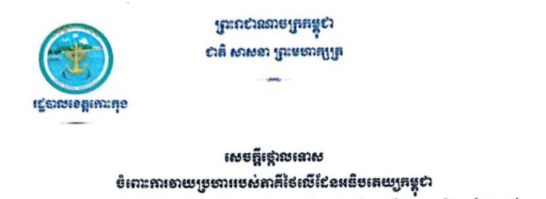 សេចក្តីថ្លែងការណ៍ របស់រដ្ឋបាលខេត្តកោះកុង