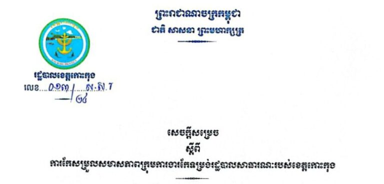 សេចក្តីសម្រេច ស្តីពីការកែសម្រួលសមាសភាពក្រុមការងារកែទម្រង់រដ្ឋបាលសាធារណៈរបស់ខេត្តកោះកុង
