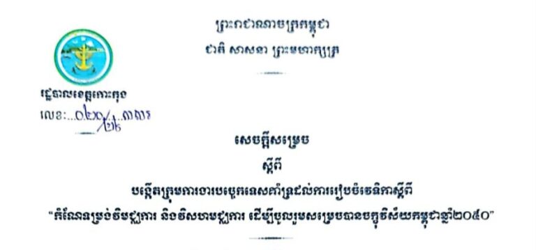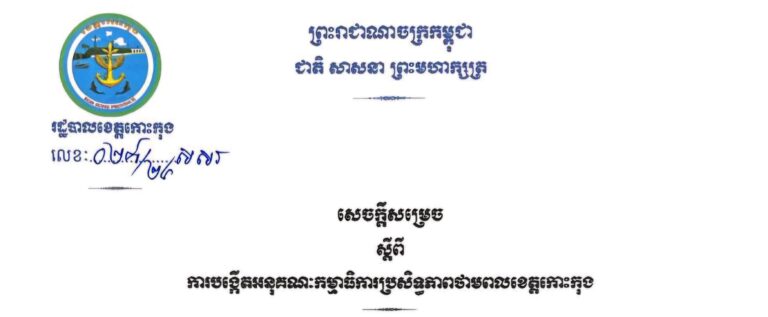 សេចក្តីសម្រេច ស្តីពីការបង្កើតអនុគណៈកម្មាធិការប្រសិទ្ធភាពថាមពលខេត្តកោះកុង