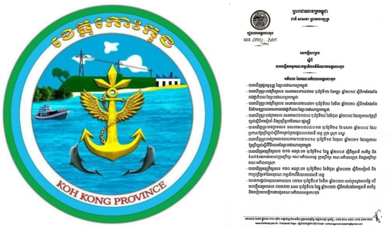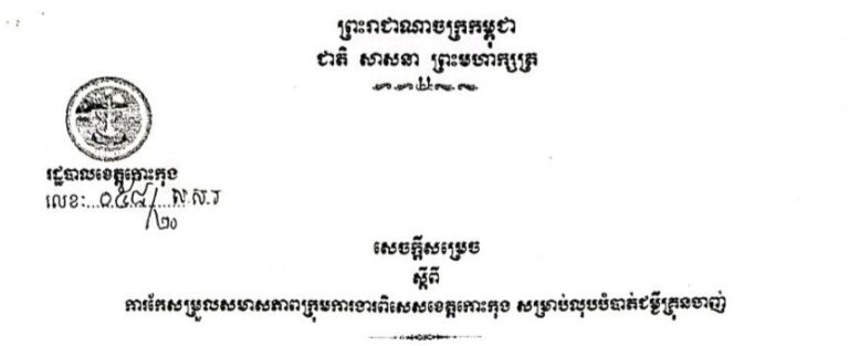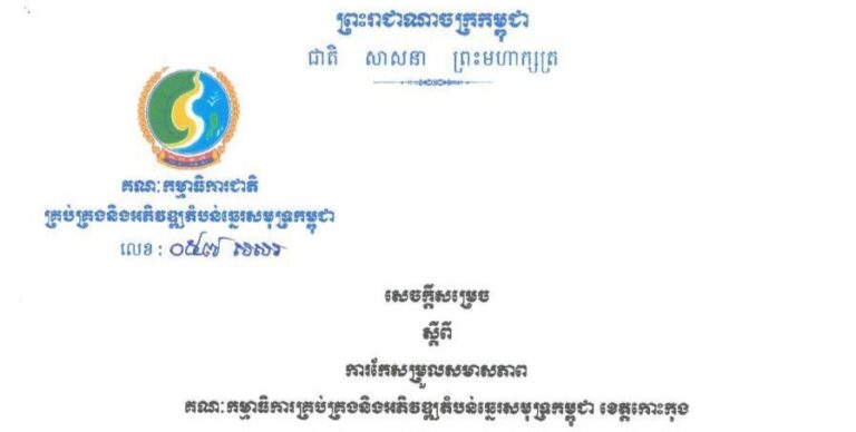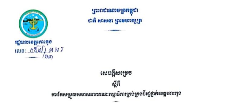 សេចក្តីសម្រេច ស្តីពីការកែសម្រួលសមាសភាពគណៈកម្មាធិការគ្រប់គ្រងដីរដ្ឋថ្នាក់ខេត្តកោះកុង