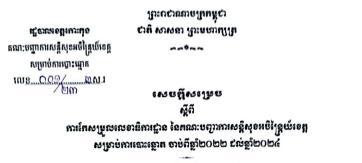 សេចក្តីសម្រេច ស្តីពីការកែសម្រួលលេខាធិការដ្ឋាន នៃគណៈបញ្ជាការសន្តិសុខអចិន្ត្រៃយ៍ខេត្ត សម្រាប់ការបោះឆ្នោត ចាប់ពីឆ្នាំ២០២២ ដល់ឆ្នាំ២០២៤