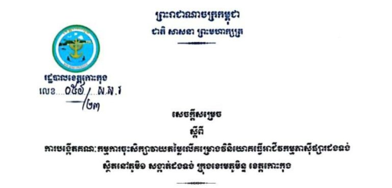 សេចក្តីសម្រេច ស្តីពីការបង្កើតអនុគណៈកម្មាធិការវិនិយោគខេត្តកោះកុង