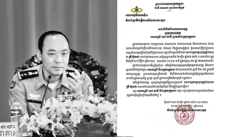សារលិខិត ចូលរួមរំលែកមរណទុក្ខ សូមគោរពជូន លោកស្រី សៅ ផានី ព្រមទាំងក្រុមគ្រួសារ របស់តំបន់ប្រតិបត្តិការសឹករងកោះកុង