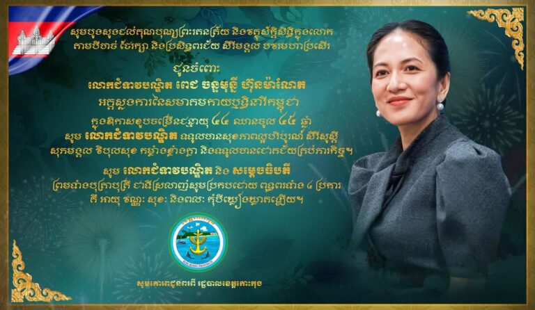សារជូនពរ សូមគោរពជូន លោកជំទាវបណ្ឌិត ពេជ ចន្ទមុន្នី ហ៊ុន ម៉ាណែត អនុប្រធានអចិន្ត្រៃយ៍កាកបាទក្រហមកម្ពុជា អនុប្រធានសមាគមគ្រូពេទ្យស្ម័គ្រចិត្ត យុវជនសម្តេចតេជោ និងជាអគ្គស្នងការសមាគមកាយឫទ្ធិនារីកម្ពុជា ក្នុងឱកាសគម្រប់ខួបជន្មាយុ ៤៤ឆ្នាំ ឈានចូល ៤៥ឆ្នាំ នៅថ្ងៃពុធ ៩រោច ខែបុស្ស ឆ្នាំរោង ឆស័ក ព.ស.២៥៦៨ ត្រូវនឹងថ្ងៃទី២២ ខែមករា ឆ្នាំ២០២៥