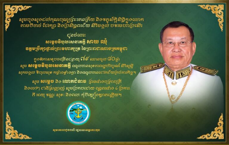សារលិខិតជូនពរ សូមគោរពជូន សម្តេចវិបុលសេនាភក្តី សាយ ឈុំ ឧត្តមប្រឹក្សាផ្ទាល់ព្រះមហាក្សត្រ នៃព្រះរាជាណាចក្រកម្ពុជា និងលោកជំទាវ អ៊ូ សាន សាយ ឈុំ