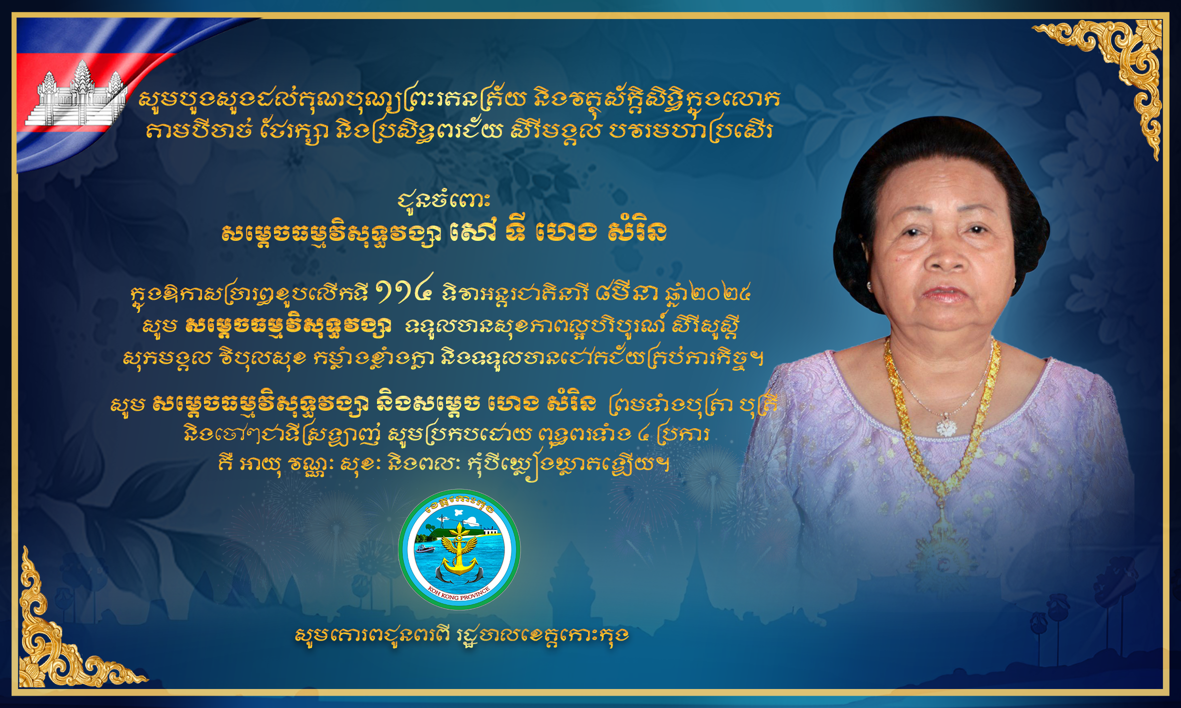សារគោរពជូនពរ ជូនចំពោះសម្តេចធម្មវិសុទ្ធវង្សា សៅ ទី ហេងសំរិន ក្នុងឱកាសចម្រើនជន្មាយុ ៨៧ឆ្នាំ ឈានចូល ៨៨ឆ្នាំ (២៣ កុម្ភៈ ១៩៣៨ – ២៣ កុម្ភៈ ២០២៥)