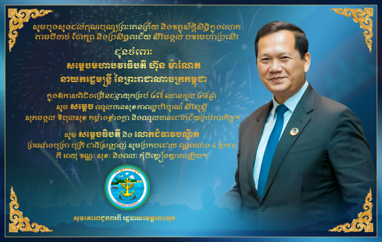 សារលិខិតជូនពរ ជូនចំពោះសម្តេចមហាបវរធិបតី ហ៊ុន ម៉ាណែត នាយករដ្ឋមន្ត្រី នៃព្រះរាជាណាចក្រកម្ពុជា ក្នុងឱកាសពិធីចម្រើនជន្មាយុកម្រប់ ៤៧ ឈានចូល ៤៨ឆ្នាំ