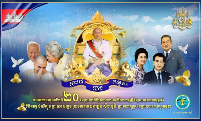 អបអរសាទរខួបលើកទី២០ នៃព្រះរាជពិធីគ្រងព្រះបរមសិរីរាជសម្បត្តិ របស់ព្រះករុណាជាអម្ចាស់ជីវិតលេីត្បូង ព្រះករុណា ព្រះបាទសម្ដេចព្រះបរមនាថ នរោត្តម សីហមុនី ព្រះមហាក្សត្រនៃព្រះរាជាណាចក្រកម្ពុជា ជាទីគោរពសក្ការៈដ៏ខ្ពង់ខ្ពស់បំផុត