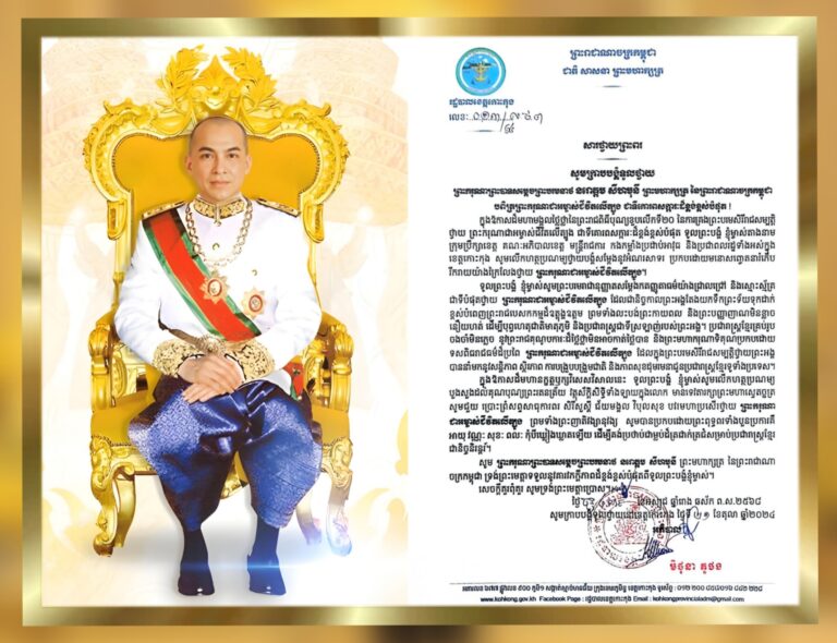 សារលិខិតអបអរសាទរ សូមគោរពជូនឯកឧត្តម ខៀវ កាញារីទ្ធ ឧត្តមប្រឹក្សាផ្ទាល់ព្រះមហាក្សត្រ នៃព្រះរាជាណាចក្រកម្ពុជា