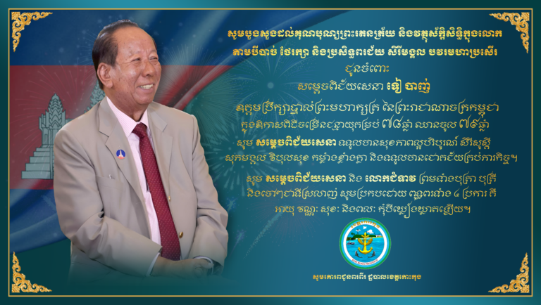 សារលិខិត គោរពជូនពរចំពោះ សម្តេចពិជ័យសេនា ទៀ បាញ់ ឧត្តមប្រឹក្សាផ្ទាល់ព្រះមហាក្សត្រ នៃព្រះរាជាណាចក្រកម្ពុជា ក្នុងឱកាសពិធីចម្រើនជន្មាយុកម្រប់ ៧៨ឆ្នាំ ឈានចូល ៧៩ឆ្នាំ