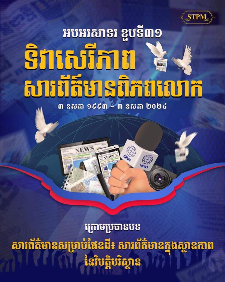 អបអរសាទរ ខួបទី៣១ ទិវាសេរីភាពសារព័ត៍មានពិភពលោក ក្រោមប្រធានបទ “សារព័ត៌មានសម្រាប់ផែនដី៖ សារព័ត៌មានក្នុងស្ថានភាព នៃវិបត្តិបរិស្ថាន” ៣ ឧសភា ១៩៩៣ ~ ៣ ឧសភា ២០២៤