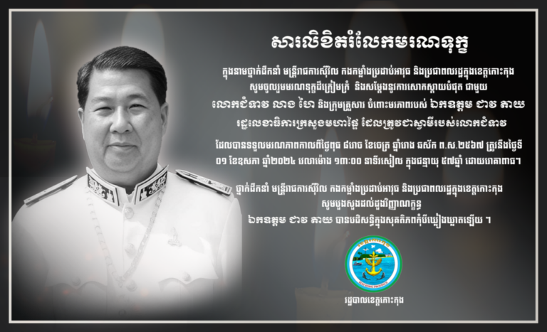 ឯកឧត្តម ដុំ យុហៀន អ្នកតំណាងរាស្ត្រមណ្ឌលខេត្តកោះកុង ផ្ញើសាររំលែកទុក្ខ គោរពជូនក្រុមគ្រួសារយោធិនពលី និងយោធិនរងរបួស