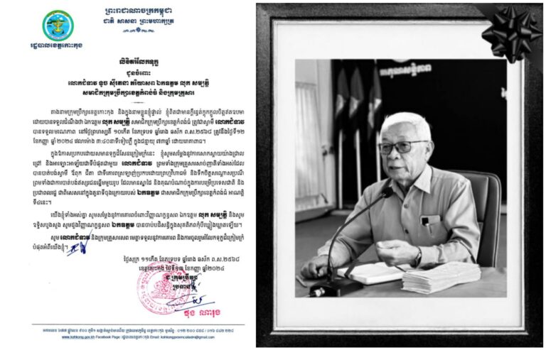 ក្រុមប្រឹក្សាខេត្តកោះកុង សូមចូលរួមរំលែកទុក្ខដ៏ក្រៀមក្រំ​ ជាមួយក្រុមគ្រួសារ នៃសព ឯកឧត្ដម លុក សម្បត្តិ សមាជិកក្រុមប្រឹក្សាខេត្តកំពង់ធំ
