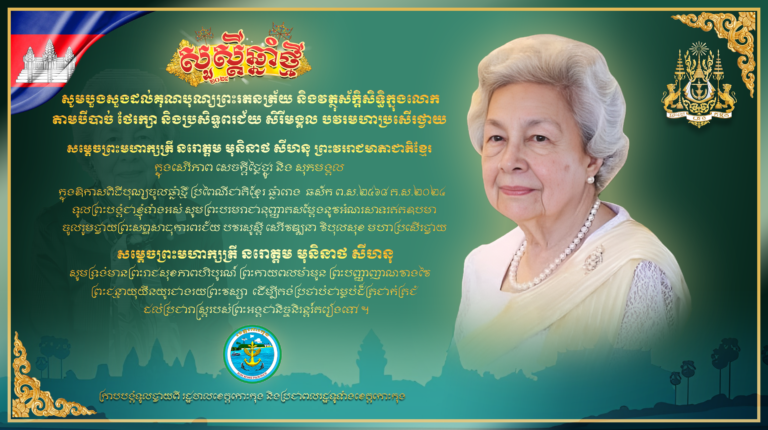 សូមបួងសួងដល់គុណបុណ្យព្រះរតនត្រ័យ និងវត្ថុស័ក្តិសិទ្ធិក្នុងលោក តាមបីបាច់ ថែរក្សា និងប្រសិទ្ធពរជ័យ សិរីមង្គល បវរមហាប្រសើរថ្វាយ សម្តេចព្រះមហាក្សត្រី នរោត្តម មុនិនាថ សីហនុ ព្រះវររាជមាតាជាតិខ្មែរ ក្នុងសេរីភាព សេចក្តីថ្លៃថ្នូរ និងសុភមង្គល ក្នុងឱកាសពិធីបុណ្យចូលឆ្នាំថ្មី ប្រពៃណីជាតិខ្មែរ ឆ្នាំរោង ឆស័ក ព.ស.២៤៦៨ គ.ស.២០២៤ ក្រាបបង្គំទូលថ្វាយពី រដ្ឋបាលខេត្តកោះកុង និងប្រជាពលរដ្ឋទូទាំងខេត្តកោះកុង