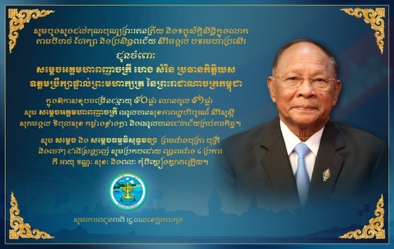 សារជូនពរ សូមគោរពជូន សម្តេចអគ្គមហាពញាចក្រី ហេង សំរិន ប្រធានកិត្តិយស នៃក្រុមឧត្តមប្រឹក្សាផ្ទាល់ព្រះមហាក្សត្រ នៃព្រះរាជាណាចក្រកម្ពុជា