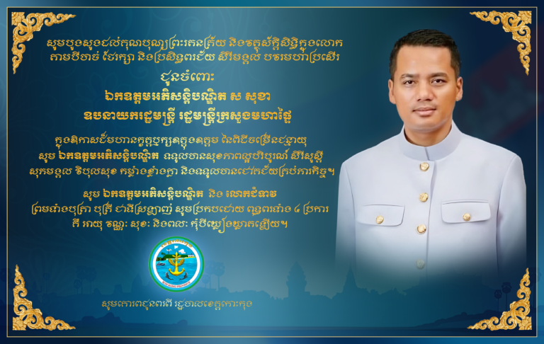 សារលិខិតជូនពរ ឯកឧត្តមអភិសន្តិបណ្ឌិត ស សុខា ឧបនាយករដ្ឋមន្ត្រី រដ្ឋមន្ត្រីក្រសួងមហាផ្ទៃ សូមគោរពជូនពរពី រដ្ឋបាលខេត្តកោះកុង