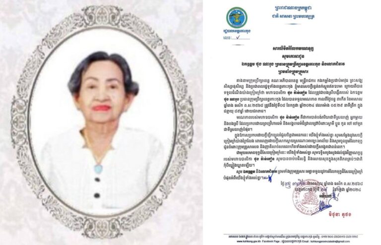សារលិខិតរំលែកមរណទុក្ខ សូមគោរពជូន ឯកឧត្តម ថុង ណារុង ប្រធានក្រុមប្រឹក្សាខេត្តកោះកុង និងលោកជំទាវ ព្រមទាំងក្រុមគ្រួសារ