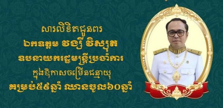 លោកជំទាវ មិថុនា ភូថង អភិបាល នៃគណៈអភិបាលខេត្តកោះកុង សូមគោរពជូនពរ ឯកឧត្តម វង្សី វិស្សុត ឧបនាយករដ្ឋមន្ត្រីប្រចាំការ ក្នុងឱកាសពិធីចម្រើនជន្មាយុគម្រប់ ៥៩ឆ្នាំ ឈានចូល ៦០ឆ្នាំ