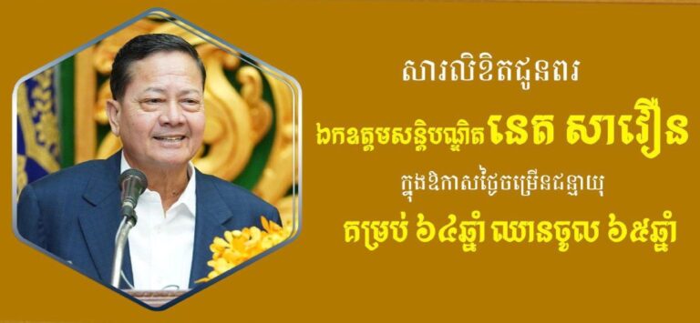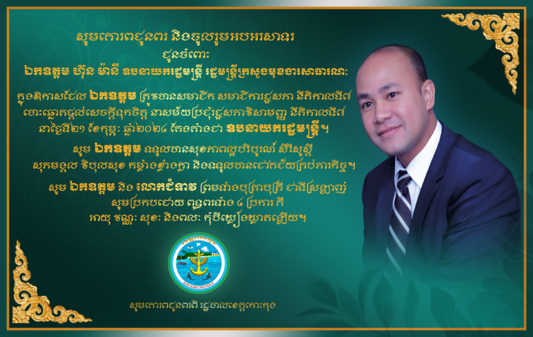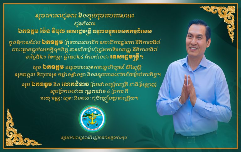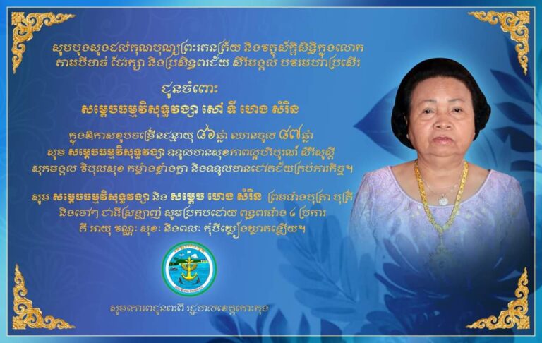 រដ្ឋបាលខេត្តកោះកុង សូមគោរពជូនពរ សម្តេចធម្មវិសុទ្ធវង្សា សៅ ទី ហេង សំរិន ក្នុងឱកាសចម្រើនជន្មាយុរបស់ សម្តេចធម្មវិសុទ្ធវង្សា