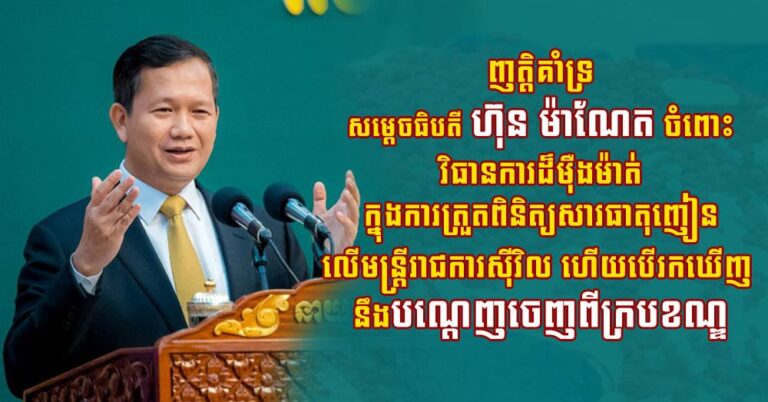 លោកជំទាវ មិថុនា ភូថង អភិបាល នៃគណៈអភិបាលខេត្តកោះកុង និងមន្រ្តីរាជការទាំងអស់ សូមសម្តែងនូវការគាំទ្រយ៉ាងពេញទំហឹង ចំពោះវិធានការដ៏ម៉ឺងម៉ាត់ និងមុតស្រួចរបស់ សម្តេចមហាបវរធិបតី ហ៊ុន ម៉ាណែត នាយករដ្ឋមន្រ្តីនៃព្រះរាជាណាចក្រកម្ពុជា ក្នុងការប្រយុទ្ធប្រឆាំងគ្រឿងញៀន តាមក្រសួងស្ថាប័ន និងរដ្ឋបាលថ្នាក់ក្រោមជាតិ ហើយបើរកឃើញមានមន្រ្តីណា មានសារធាតុញាណក្នុងខ្លួន នឹងត្រូវបណ្តេញចេញពីក្របខណ្ឌ ដោយគ្មានការលើកលែង