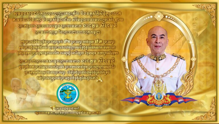 សារថ្វាយព្រះពរ សូមក្រាបបង្គំទូលថ្វាយ ព្រះករុណាព្រះបាទសម្តេចព្រះបរមនាថ នរោត្តម សីហមុនី ព្រះមហាក្សត្រ នៃព្រះរាជាណាចក្រកម្ពុជា ក្នុងឱកាសប្រកបដោយអភិសិរីមង្គល នៃព្រះរាជពិធីបុណ្យចម្រើន ព្រះជន្មាយុ គម្រប់ ៧២ យាងចូល ៧៣ ព្រះវស្សា