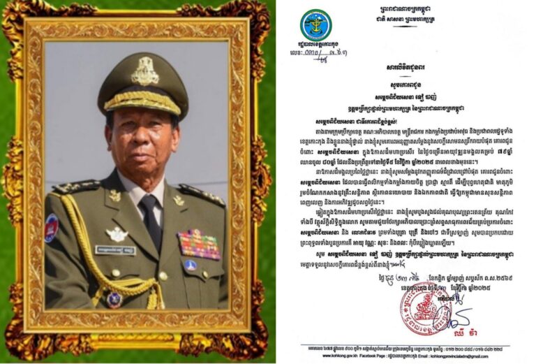 សារលិខិតជូនពរ សូមគោរពជូន សម្តេចពិជ័យសេនា ទៀ បាញ់ ឧត្តមប្រឹក្សាផ្ទាល់ព្រះមហាក្សត្រ នៃព្រះរាជាណាចក្រកម្ពុជា ក្នុងឱកាសដ៏មហាប្រសើរ នៃថ្ងៃចម្រើនអាយុវឌ្ឍនមង្គលគម្រប់ ៧៩ឆ្នាំ ឈានចូល ៨០ឆ្នាំ ដែលនឹងប្រព្រឹត្តទៅនាថ្ងៃទី៥ ខែវិច្ឆិកា ឆ្នាំ២០២៥ នាពេលខាងមុខនេះ