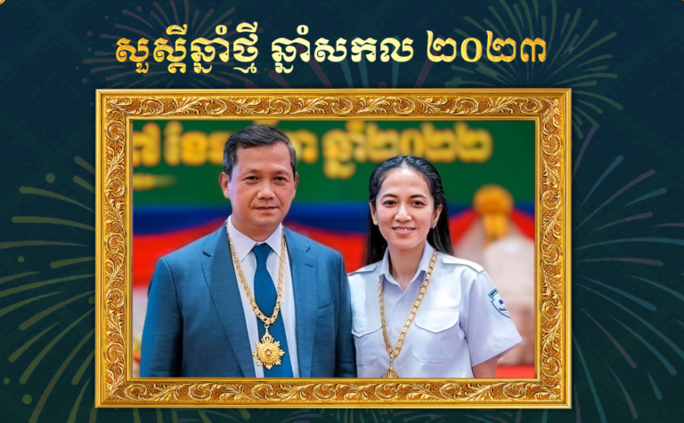 សារជូនពរ សូមគោរពជូន ឯកឧត្តម ហ៊ុន ម៉ាណែត អគ្គមេបញ្ជាការរង នៃកងយោធពលខេមរភូមិន្ទ មេបញ្ជាការកងទ័ពជើងគោក និងលោកជំទាវ ក្នុងឱកាសបុណ្យចូលឆ្នាំថ្មី ឆ្នាំសកល២០២៣ ។ សូមគោរពជូនពរពី លោកជំទាវ មិថុនា ភូថង អភិបាល នៃគណៈអភិបាលខេត្តកោះកុង និងក្រុមគ្រួសារ