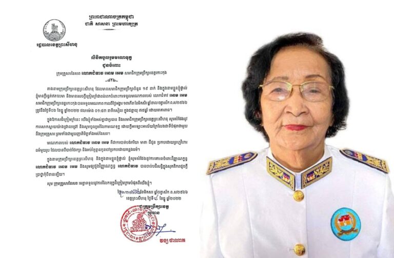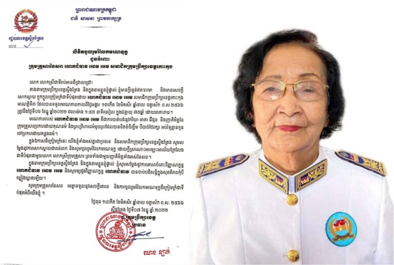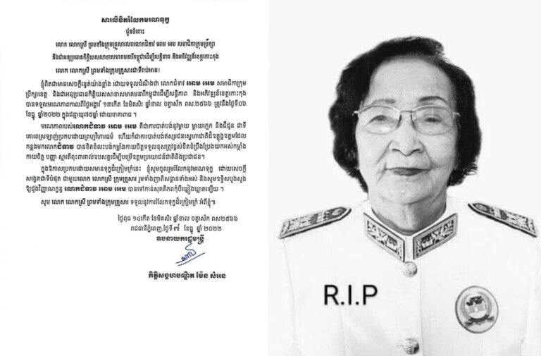 ក្រុមប្រឹក្សារាជធានីភ្នំពេញ ផ្ញើសារលិខិតរំលែកមរណទុក្ខជូនចំពោះក្រុមគ្រួសារ នៃសព លោកជំទាវ អោម អេម សមាជិកក្រុមបឹក្សាខេត្តកោះកុង អាណត្តិទី៣