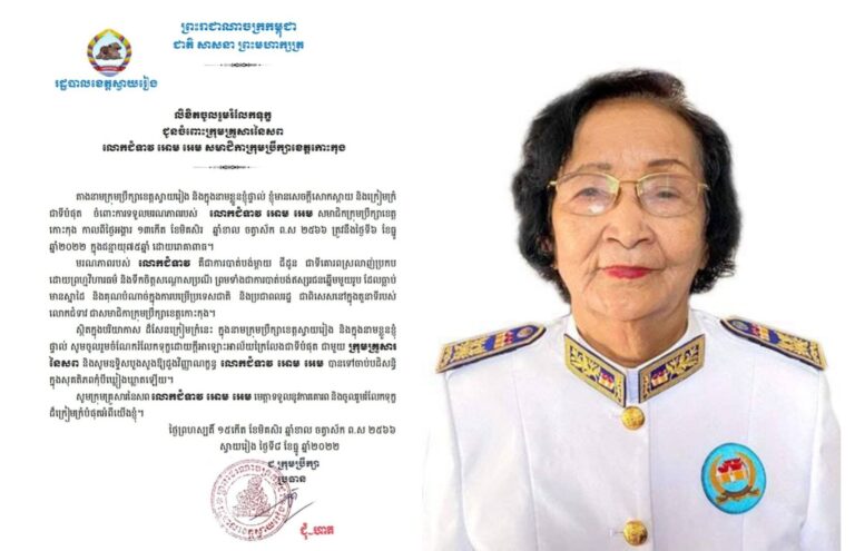 ក្រុមប្រឹក្សាខេត្តស្វាយរៀង សូមផ្ញើសារលិខិតរំលែកទុក្ខ ជូនចំពោះក្រុមគ្រួសារសពលោកជំទាវ អោម អេម សមាជិកក្រុមប្រឹក្សាខេត្តកោះកុង