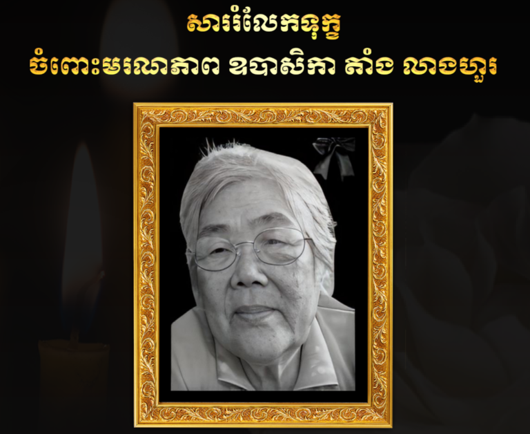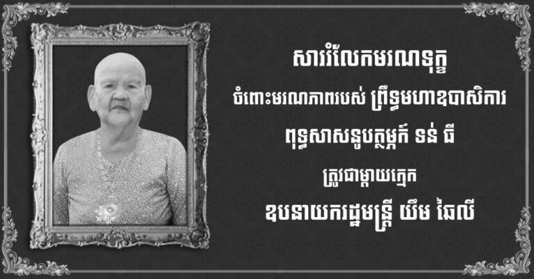 លោកជំទាវ មិថុនា ភូថង អភិបាល នៃគណៈអភិបាលខេត្តកោះកុង និងក្រុមគ្រួសារ សូមចូលរួមមរណទុក្ខដ៏ក្រៀមក្រំ និងសម្តែងនូវការសោកស្តាយបំផុត ចំពោះការបាត់បង់ដ៏ធំធេងរបស់ ឧបាសិកា តាំង លាងហួរ ដែលត្រូវជាម្តាយបង្កើតរបស់ឯកឧត្តម នាយឧត្ដមសេនីយ៍ មៀច សុផាន់ណា រដ្ឋលេខាធិការ ក្រសួងមហាផ្ទៃ