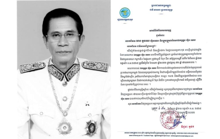 សារលិខិតរំលែកទុក្ខ ជូនចំពោះលោកជំទាវ លាង វួចឆេង ហ៊ុនណេង និងក្រុមគ្រួសារនៃសព ឯកឧត្តម ហ៊ុន ណេង