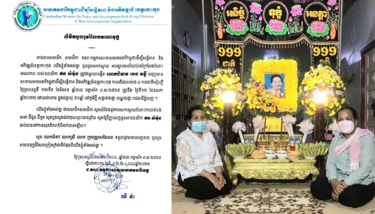 សាខាសមាគមនារីកម្ពុជាដើម្បីសន្តិភាព និងអភិវឌ្ឍន៍ខេត្តកោះកុង ចូលរួមរំលែកមរណទុក្ខ ជូនចំពោះ លោកជំទាវ ចេង វន្នី អនុប្រធានសាខាសមាគមនារីកម្ពុជាដើម្បីសន្តិភាព និងអភិវឌ្ឍន៍ ខេត្តកោះកុង និងក្រុមគ្រួសារ
