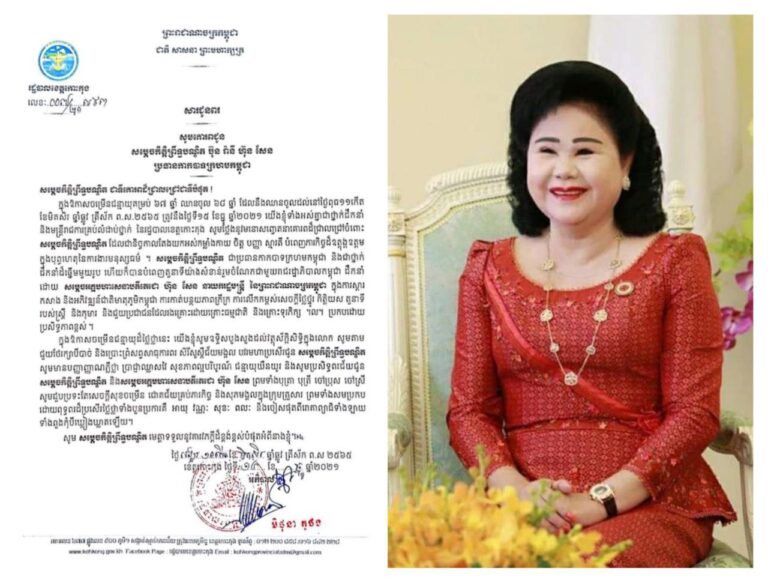 លោកជំទាវ មិថុនា ភូថង អភិបាល​ នៃ​គណៈអភិបាលខេត្ត​កោះកុង និង​ជាប្រធានកាយឫទ្ធិជាតិកម្ពុជា​ ខេត្ត​កោះកុង​ សូមចូលរួម អបអរសាទរលោកជំទាវបណ្ឌិត ពេជ ចន្ទមុន្នី ហ៊ុនម៉ាណែត ដែលត្រូវ​បាន​អង្គសន្និបាតបោះឆ្នោតជ្រើសរើសជា អគ្គស្នងការសមាគមកាយឫទ្ធិនារីកម្ពុជា សម្រាប់អាណ​ត្តិ​ ២០២១-២០២៤