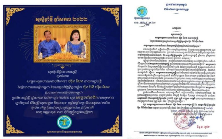តាងនាមថ្នាក់ដឹកនាំ មន្ត្រីរាជការស៊ីវិល កងកម្លាំងប្រដាប់អាវុធ និងប្រជាពលរដ្ឋក្នុងខេត្តកោះកុង សូម អនុញ្ញាតចូលរួមសម្ដែងនូវអំណ៍រសាទរ ប្រកបដោយមនោសញ្ចេតនារំភើបរីករាយយ៉ាងក្រៃលែងជូនចំពោះ សម្តេចអគ្គមហាសេនាបតីតេជោ និងសម្តេចកិត្តិព្រឹទ្ធបណ្ឌិត ក្នុងឱកាសចូលឆ្នាំថ្មី ឆ្នាំសកល គ្រិស្តសករាជ ២០២២ ដែលនឹងចូលមកដល់នាថ្ងៃទី០១ ខែមករា ឆ្នាំ២០២២ ខាងមុខនេះ