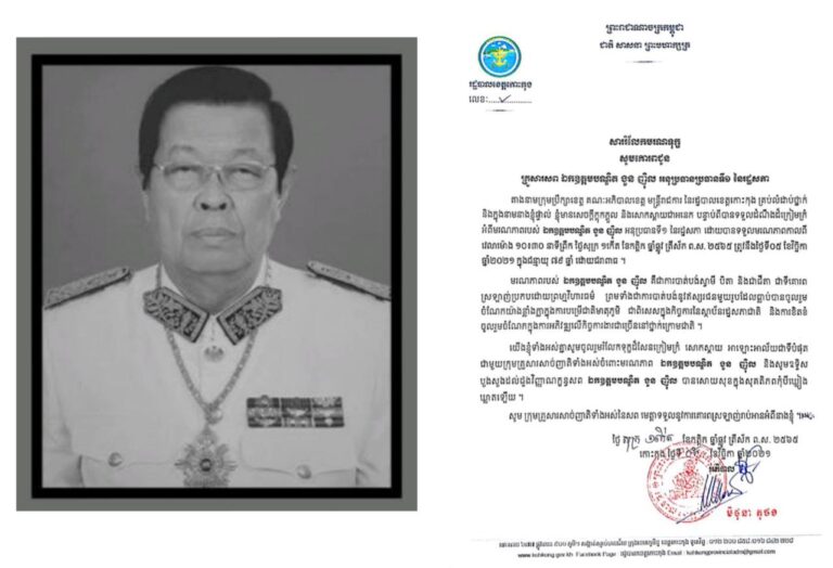 សាររំលែកទុក្ខ គ្រួសារសព ឯកឧត្តមបណ្ឌិត ងួន ញ៉ិល អនុប្រធានទី១ នៃរដ្ឋសភា