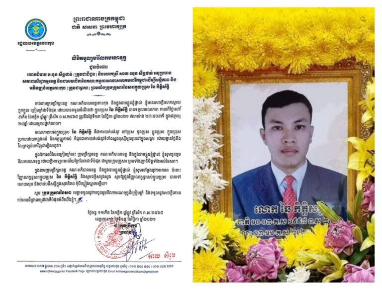 សាររំលែកទុក្ខ ជូនចំពោះឯកឧត្តម ស៊ុន សុផល សមាជិកក្រុមប្រឹក្សាខេត្តកោះកុង និងលោកជំទាវ ព្រមទាំងក្រុមគ្រួសារ