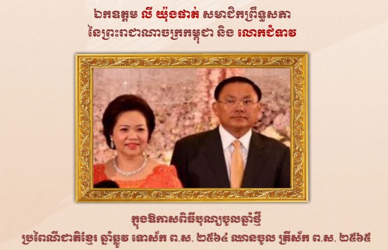 សារគោរពជូនពរ ឯកឧត្តម លី យ៉ុងផាត់ សមាជិកព្រឹទ្ធសភា នៃព្រះរាជាណាចក្រកម្ពុជា និងលោកជំទាវ ក្នុងឱកាសពិធីបុណ្យចូលឆ្នាំថ្មី ប្រពៃណី ឆ្នាំឆ្លូវ ទោស័ក ព.ស.២៥៦៤ ឈានចូល ត្រីស័ក ព.ស.២៥៦៥ សូមគោរពជូនពរ ពីរដ្ឋបាលខេត្តកោះកុង និងបងប្អូនប្រជាពលរដ្ឋទូទាំងខេត្តកោះកុង