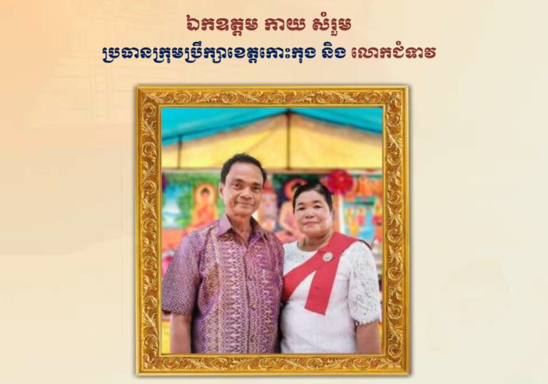 សារគោរពជូនពរ ឯកឧត្តម កាយ សំរួម ប្រធានក្រុមប្រឹក្សាខេត្តកោះកុង និងលោកជំទាវ ក្នុងឱកាសពិធីបុណ្យចូលឆ្នាំថ្មី ប្រពៃណី ឆ្នាំឆ្លូវ ទោស័ក ព.ស.២៥៦៤ ឈានចូល ត្រីស័ក ព.ស.២៥៦៥ សូមគោរពជូនពរ ពីមន្ត្រីបង្គោលព័ត៌មានវិទ្យា សាលាខេត្តកោះកុង