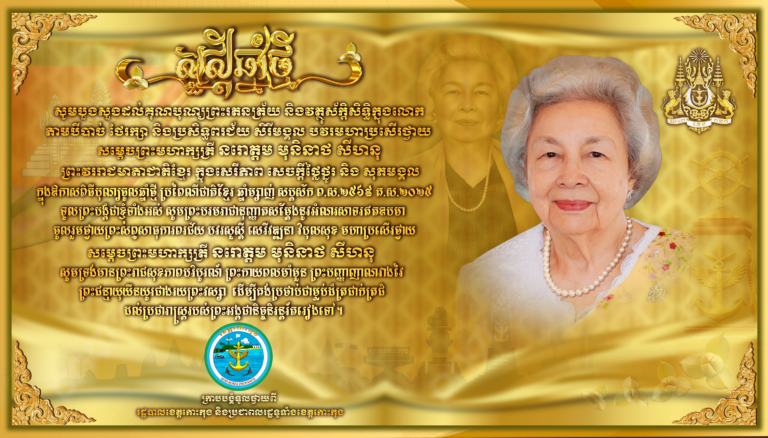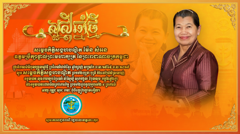 សារជូនពរ សូមគោរពជូន សម្តេចកិត្តិសង្គហបណ្ឌិត ម៉ែន សំអន ឧត្តមប្រឹក្សាផ្ទាល់ព្រះមហាក្សត្រ និងជានាយឧត្តមសេនីយ៍ផុតលេខ ផ្កាយមាស ៥ នៃកងយោធពលខេមរភូមិន្ទ ក្នុងឱកាសពិធីបុណ្យចូលឆ្នាំថ្មី ប្រពៃណីជាតិខ្មែរ ឆ្នាំម្សាញ់ សប្តស័ក ព.ស.២៥៦៩ គ.ស.២០២៥ សូមគោរពជូនពរពី រដ្ឋបាលខេត្តកោះកុង