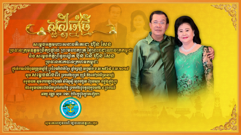 សារជូនពរ សូមគោរពជូន សម្តេចអគ្គមហាសេនាបតីតេជោ ហ៊ុន សែន ប្រធានព្រឹទ្ធសភា និងជាប្រធានក្រុមឧត្តមប្រឹក្សាផ្ទាល់ព្រះមហាក្សត្រ នៃព្រះរាជាណាចក្រកម្ពុជា និងសម្តេចកិត្តិព្រឹទ្ធបណ្ឌិត ប៊ុន រ៉ានី ហ៊ុន សែន ក្នុងឱកាសពិធីបុណ្យចូលឆ្នាំថ្មី ប្រពៃណីជាតិខ្មែរ ឆ្នាំម្សាញ់ សប្តស័ក ព.ស.២៥៦៩ គ.ស.២០២៥ សូមគោរពជូនពរពី រដ្ឋបាលខេត្តកោះកុង