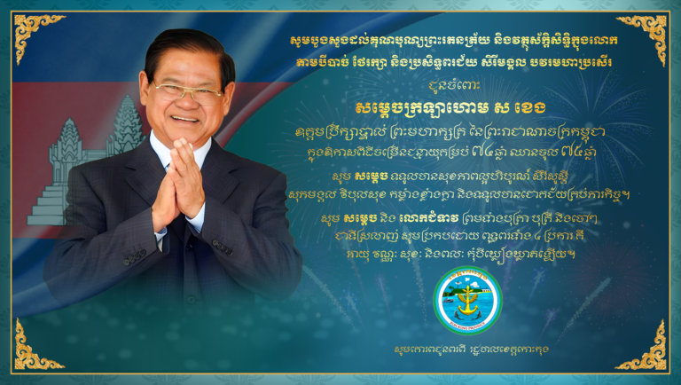 សារជូនពរ សូមគោរពជូន សម្តេចក្រឡាហោម ស ខេង ឧត្តមប្រឹក្សាផ្ទាល់ព្រះមហាក្សត្រ នៃព្រះរាជាណាចក្រកម្ពុជា ក្នុងឱកាសខួបចម្រើនជន្មាយុរបស់ សម្តេចក្រឡាហោម នាថ្ងៃទី១៥ ខែមករា ឆ្នាំ២០២៥ ខាងមុខនេះ