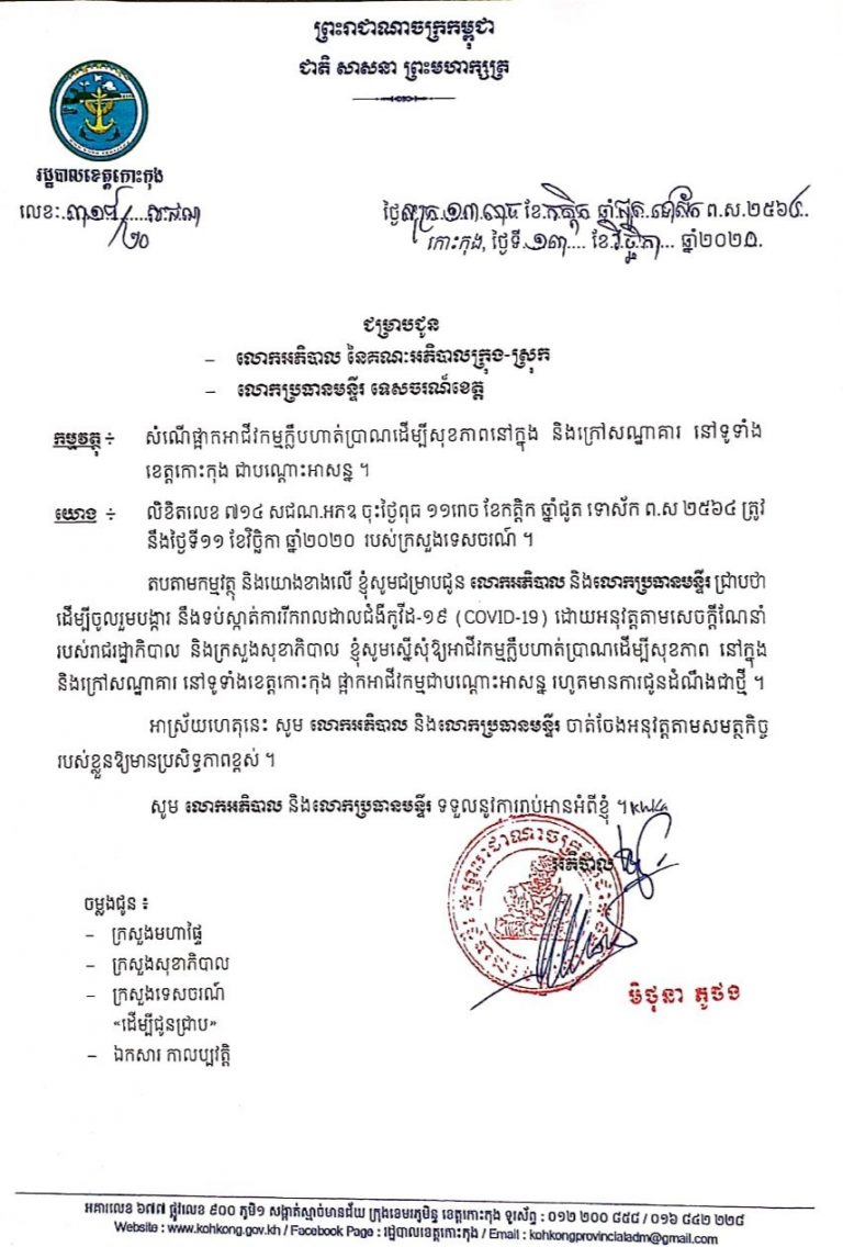 សេចក្តីណែនាំ ស្តីពីការផ្អាកអាជីវកម្មក្លឹបហាត់ប្រាណ