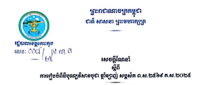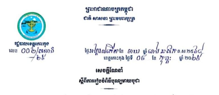 សេចក្តីណែនាំ ស្តីពីការរៀបចំពិធីបុណ្យវិសាខបូជា ឆ្នាំម្សាញ់ សប្តស័ក ព.ស.២៥៦៩ គ.ស.២០២៥