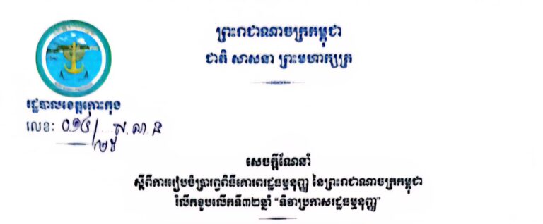 សេចក្តីណែនាំ ស្តីពីការរៀបចំប្រារព្ធពិធីគោរពរដ្ឋធម្មនុញ្ញ នៃព្រះរាជាណាចក្រកម្ពុជា រំលឹកខួបលើកទី៣២ឆ្នាំ “ទិវាប្រកាសរដ្ឋធម្មនុញ្ញ”
