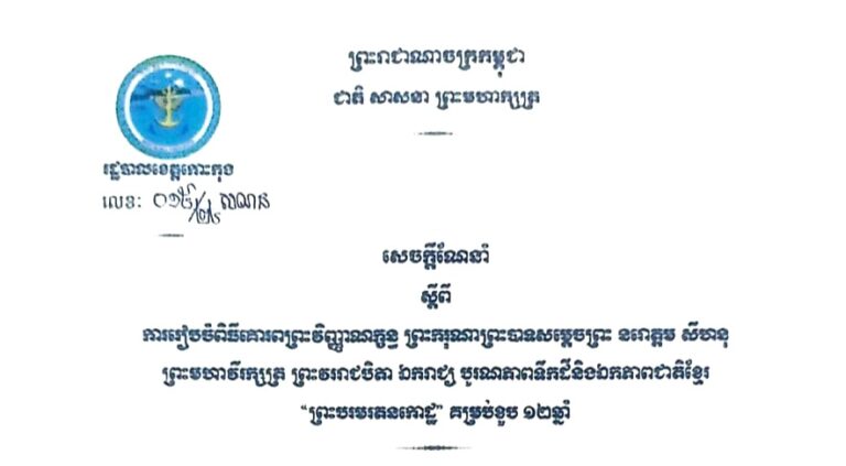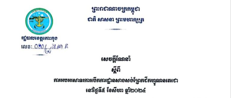 សេចក្តីណែនាំ ស្តីពីការចូលរួមអបអរសាទរព្រះរាជពិធីបុណ្យអុំទូក បណ្តែតប្រទីប និងសំពះព្រះខែ អកអំបុក ឆ្នាំ២០២៤