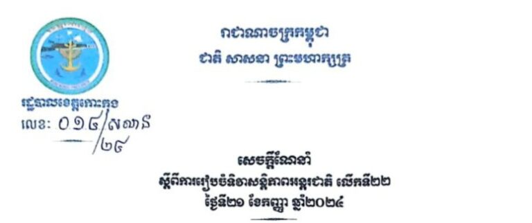 សេចក្តីណែនាំ ស្តីពីការរៀបចំនួបអនុស្សាវរីយ៍លើកទី ៧១ នៃទិវាបុណ្យឯករាជ្យជាតិ ៩ វិច្ឆិកា និងទិវាកំណើតនៃកងយោធពលខេមរភូមិន្ទ ឆ្នាំ២០២៤