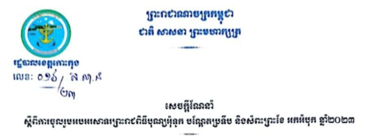 សេចក្ដីណែនាំ ស្តីពីការចូលរូមអបអរសាទរព្រះរាជពិធីបុណ្យអុំទូក បណ្តែតប្រទីប និងសំពះព្រះខែ អកអំបុក ឆ្នាំ២០២៣