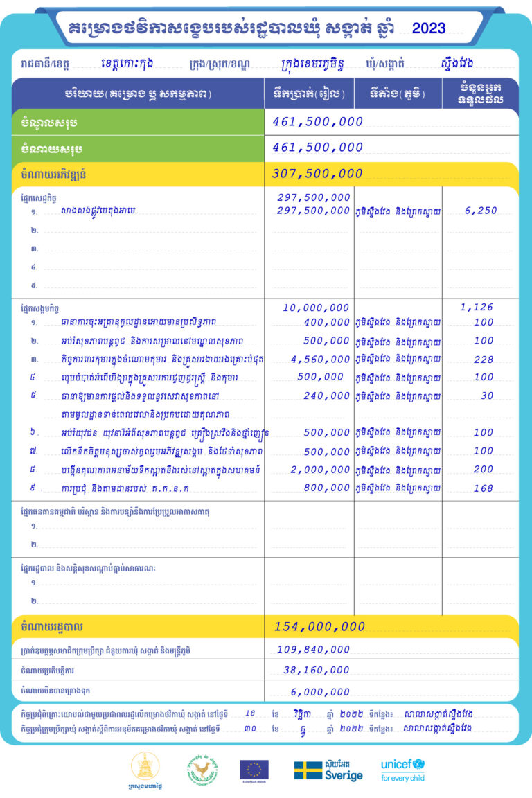 រដ្ឋបាលសង្កាត់ស្ទឹងវែង ក្រុងខេមរភូមិន្ទ ខេត្តកោះកុង មានកិត្តិយស ផ្សព្វផ្សាយជូនសាធារណជនអំពី គម្រោងថវិកាសង្ខេបរបស់រដ្ឋបាលឃុំ សង្កាត់ ឆ្នាំ២០២៣