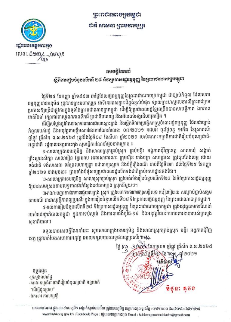 សេចក្តីណែនាំ ស្តីពីការរៀបចំខួបលើកទី ២៨ ទិវាប្រកាសរដ្ឋធម្មនុញ្ញ នៃព្រះរាជាណាចក្រកម្ពុជា