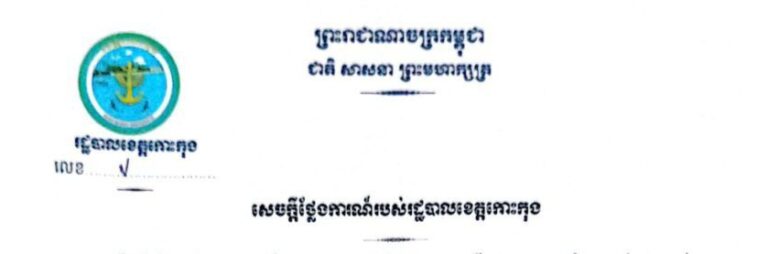 សេចក្តីថ្លែងការណ៍ របស់រដ្ឋបាលខេត្តកោះកុង